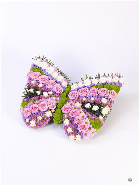 A pretty butterfly tribute made with flowers in your choice of colours. Please note this item requires at least 2 days notice.