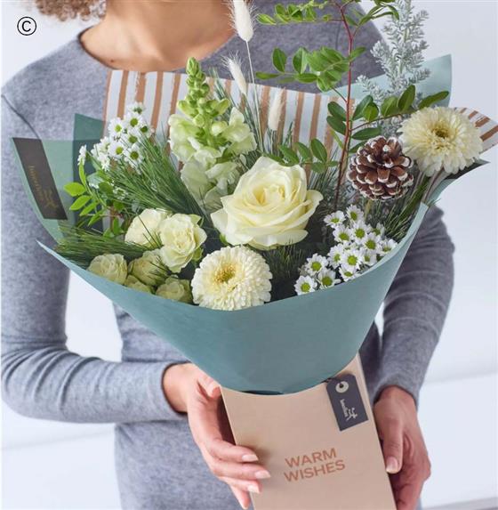 A beautiful little gift box of fresh flowers in soft muted shades, chosen and arranged by hand by a local florist.